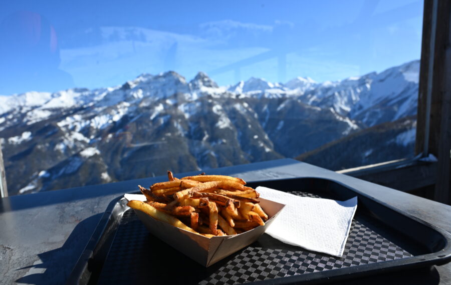 Located on the edge of the blue Peguieou slope, discover the address where the fries are truly local: at Omanu, the potatoes come from the owner’s garden, in the valley. About 300 kg of seeds are planted on 2,800 m², for a harvest of about 3 tons. And before arriving on your plate, everything is prepared on site, at altitude: sorting, cutting, cooking… Zero detours.