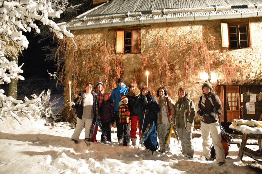 Balade en raquettes aux flambeaux et repas à la ferme auberge.