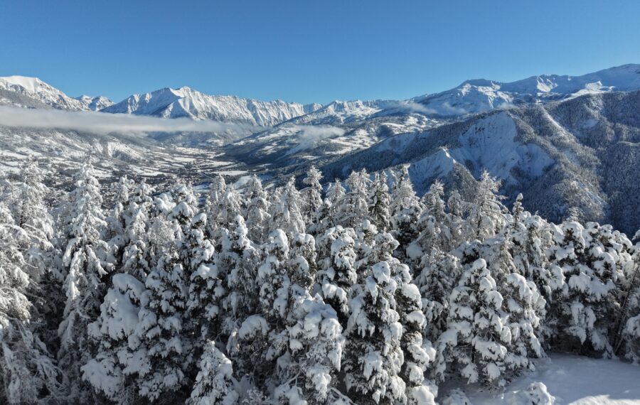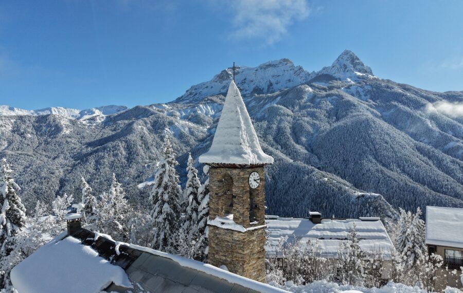 L’inverno non congela la montagna. A Pra Loup la neve ricopre i boschi di larici e i crinali del Mercantour, ma la vita scorre in silenzio.